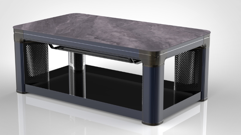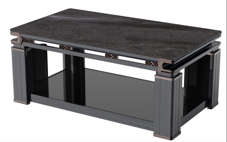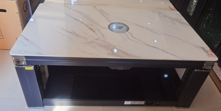 巖板、電磁爐、智能語音,電鍍轉(zhuǎn)角,中層架,鋁板發(fā)熱,黑木紋色,收納線盒,單開關(guān)控制